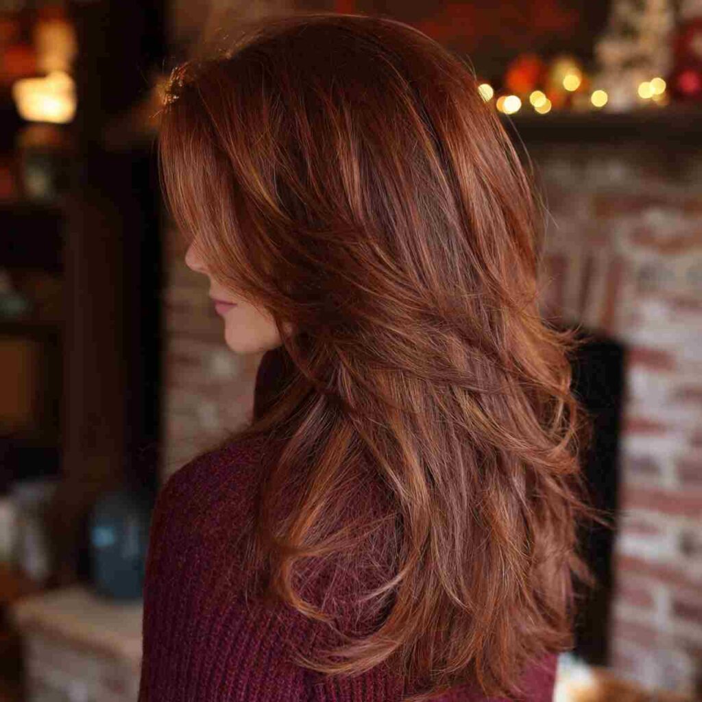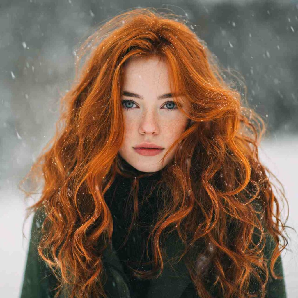 Vibrant copper with orange-red undertones creates stunning warmth and personality. This bold shade catches light beautifully and makes a confident statement throughout winter months.