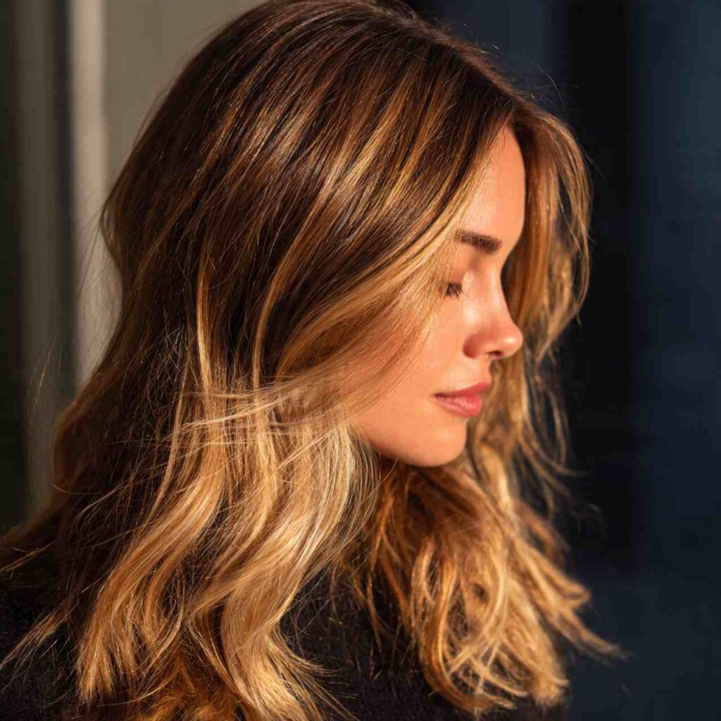 Medium-light brown with warm hazelnut undertones creates natural beauty. This shade mimics natural lightening while adding warmth and life.