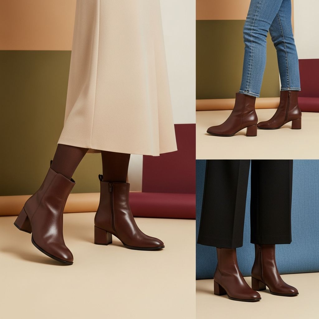 Invest in ankle boots with a comfortable heel height (block or kitten heels work beautifully), quality leather that will age gracefully, and a timeless silhouette. The beauty of black is its seamless integration with every outfit. Wear them with cropped or full-length pants, under midi skirts, or with tights and dresses for endless styling possibilities.