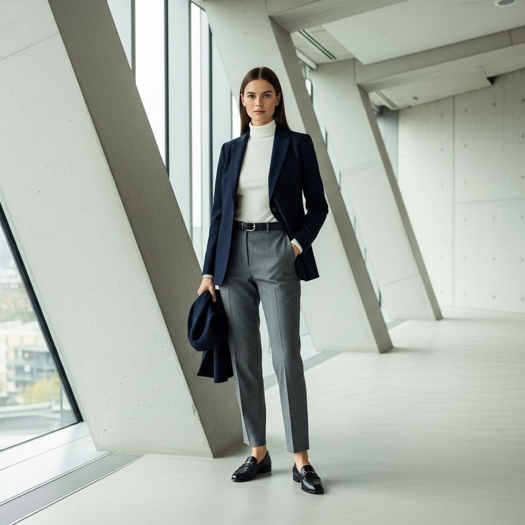 Look for a blazer with proper shoulder structure, quality wool fabric, and tailoring that fits your body shape. Single or double-breasted both work choose based on your personal style. Layer it over turtlenecks and silk blouses, pair with matching navy trousers for a suit, or throw it over a dress for added warmth and structure.