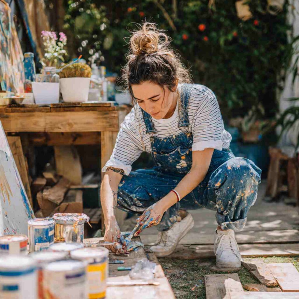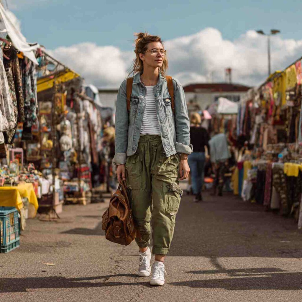 Select overalls in classic denim or canvas fabric. Layer a fitted long-sleeve top or thin sweater underneath stripes work particularly well. Style with one or both straps undone for varied looks. Add sneakers or ankle boots. Roll the cuffs if weather permits. This outfit works for creative projects, outdoor activities, markets, or any weekend plans requiring functional clothing.