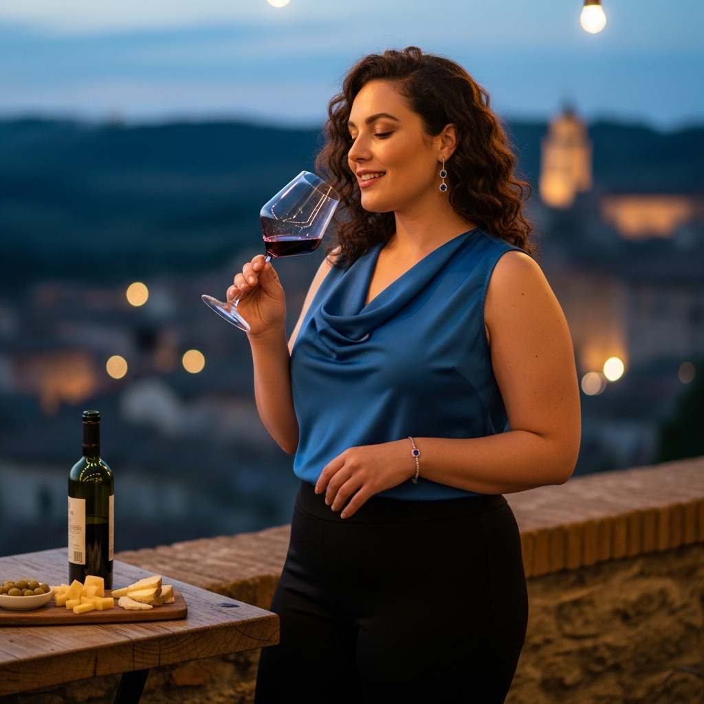 One bold-colored top emerald green, cobalt blue, or coral adds personality to neutral bottoms. Choose a flattering neckline that makes you feel confident. This becomes your “special dinner” top.