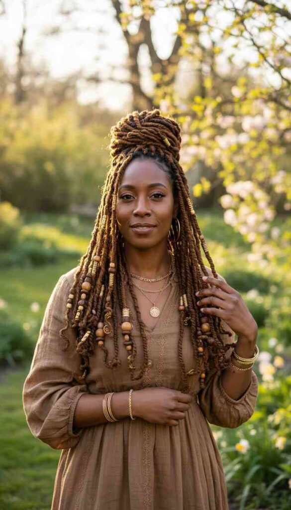 15. Faux Locs with Gold Accessories