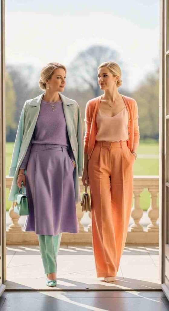Pastel appropriateness—soft pastels (mint, lavender, peach, baby blue, blush) feel perfectly May-aligned, echoing spring flowers without summer’s bold brights.
