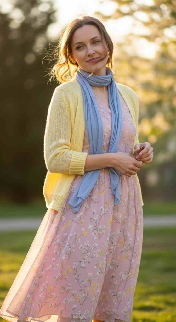 Functional accessories—scarves or light wraps provide warmth when needed while being easily stowable when temperatures climb.