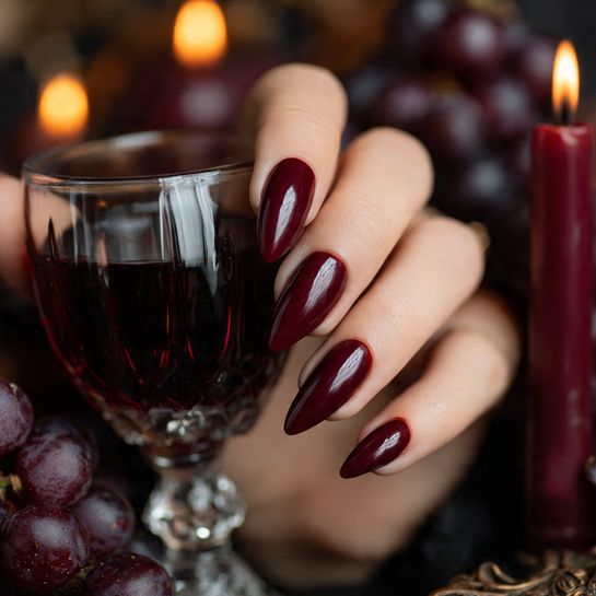 Sophisticated and sultry, this dark wine red is perfect for evening events or adding drama to daytime looks. It’s the shade of expensive cabernet in crystal glasses.