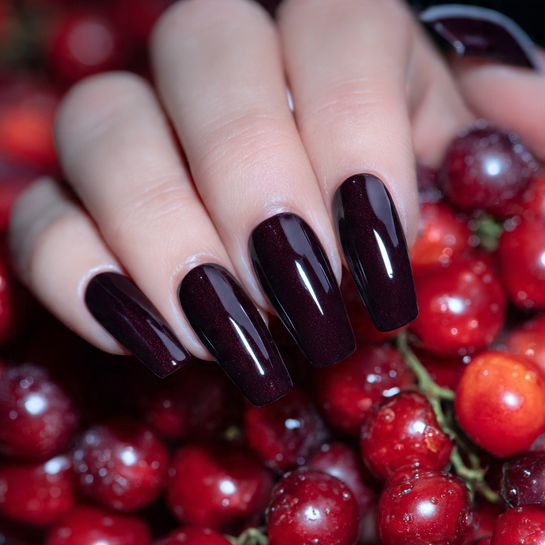Fizzy, fun, and dangerously darkโthis black-cherry shade has depth that reveals itself in sunlight, showing hints of deep red and purple.