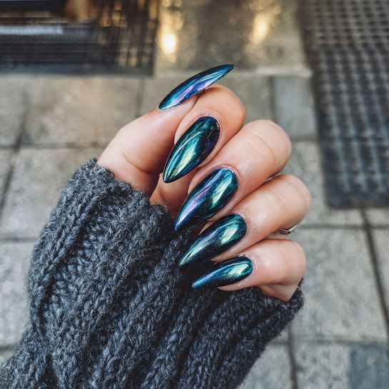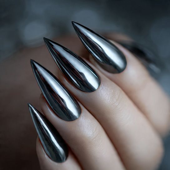 High-tech meets high-fashion in this dark gray chrome that looks like liquid metal. It’s futuristic, bold, and absolutely show-stopping.