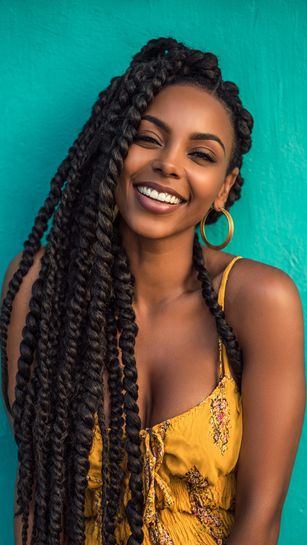 These thick two-strand twists offer a gorgeous textured look that’s perfect for transitioning hair or as a protective style on its own. They’re versatile enough to wear down or styled into updos.