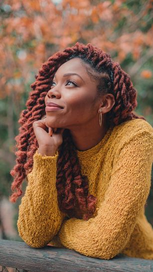 These bohemian-style twists offer a softer alternative to traditional Senegalese twists. The auburn color adds warmth and dimension, creating a gorgeous contrast against darker skin tones and bringing a fresh seasonal vibe.