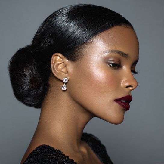 This polished style combines elegance with edge. A smooth, sleek low bun paired with artistically laid baby hairs creates a sophisticated look perfect for formal events or professional settings.