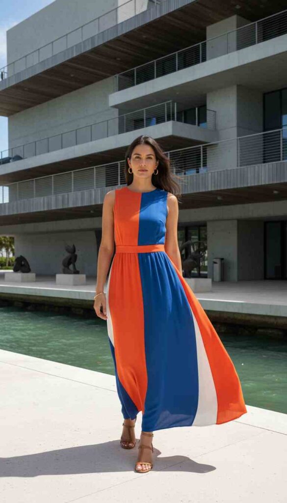 Earth tones require more careful styling in Miami—their natural beauty can get swallowed by the city’s vibrant surroundings. When wearing neutrals, ensure at least one vibrant accent through accessories, print, or footwear that acknowledges Miami’s colorful environment.