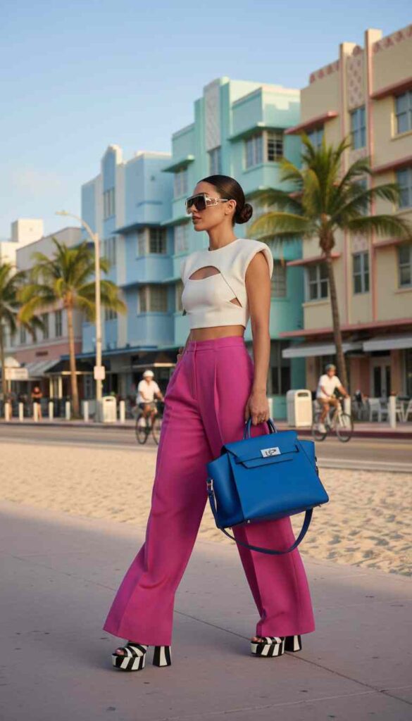 Miami’s neighborhoods each have distinct cultural characters that influence appropriate styling. South Beach demands maximum glamour and unapologetic skin—the streets function as permanent fashion runways where being overdressed barely exists as a concept. Art deco architecture provides the perfect backdrop for bold colors and dramatic silhouettes.