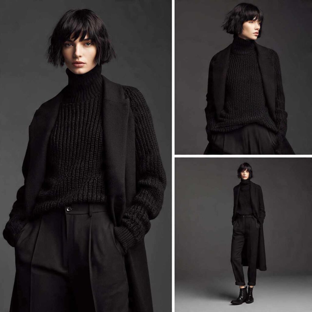 All-black outfits feel timeless and powerful when textures vary.