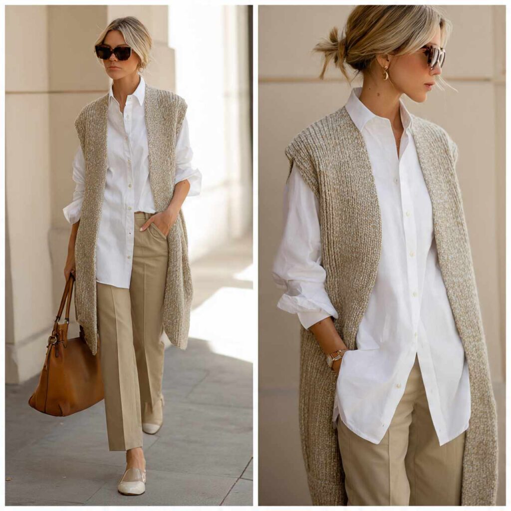 16. Longline Vest + Button-Down Shirt
