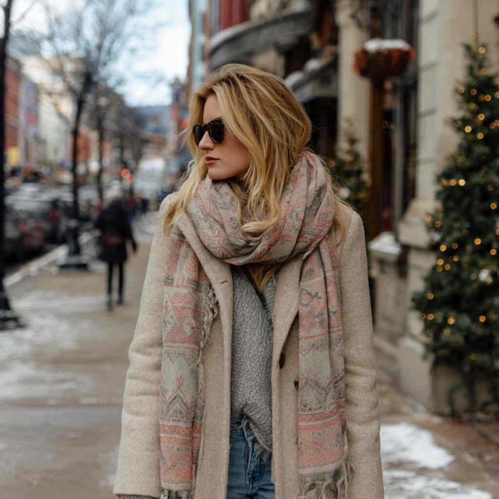 A bold scarf can transform basic winter pieces instantly.