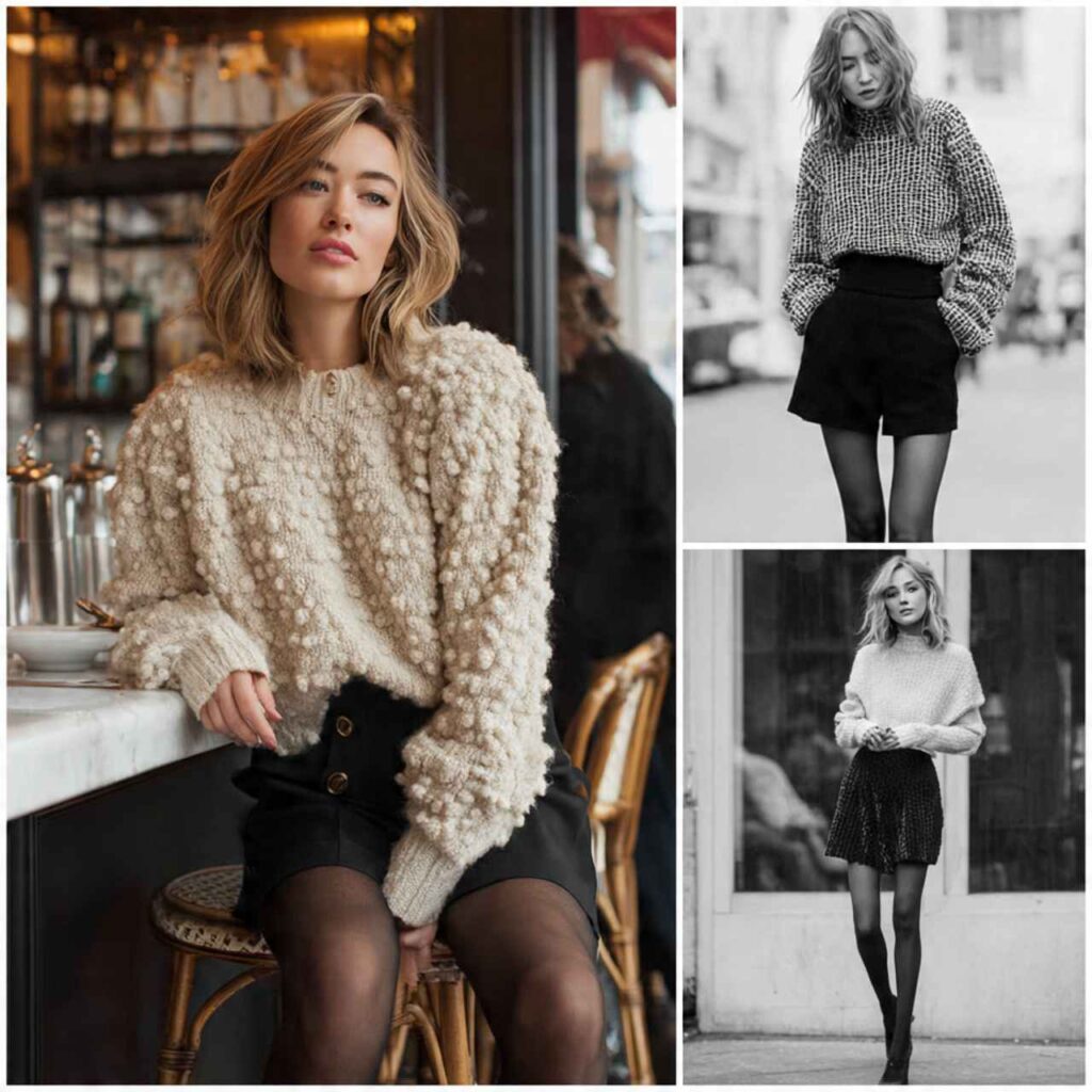 Pairing cozy knits with skirts keeps outfits playful and balanced.