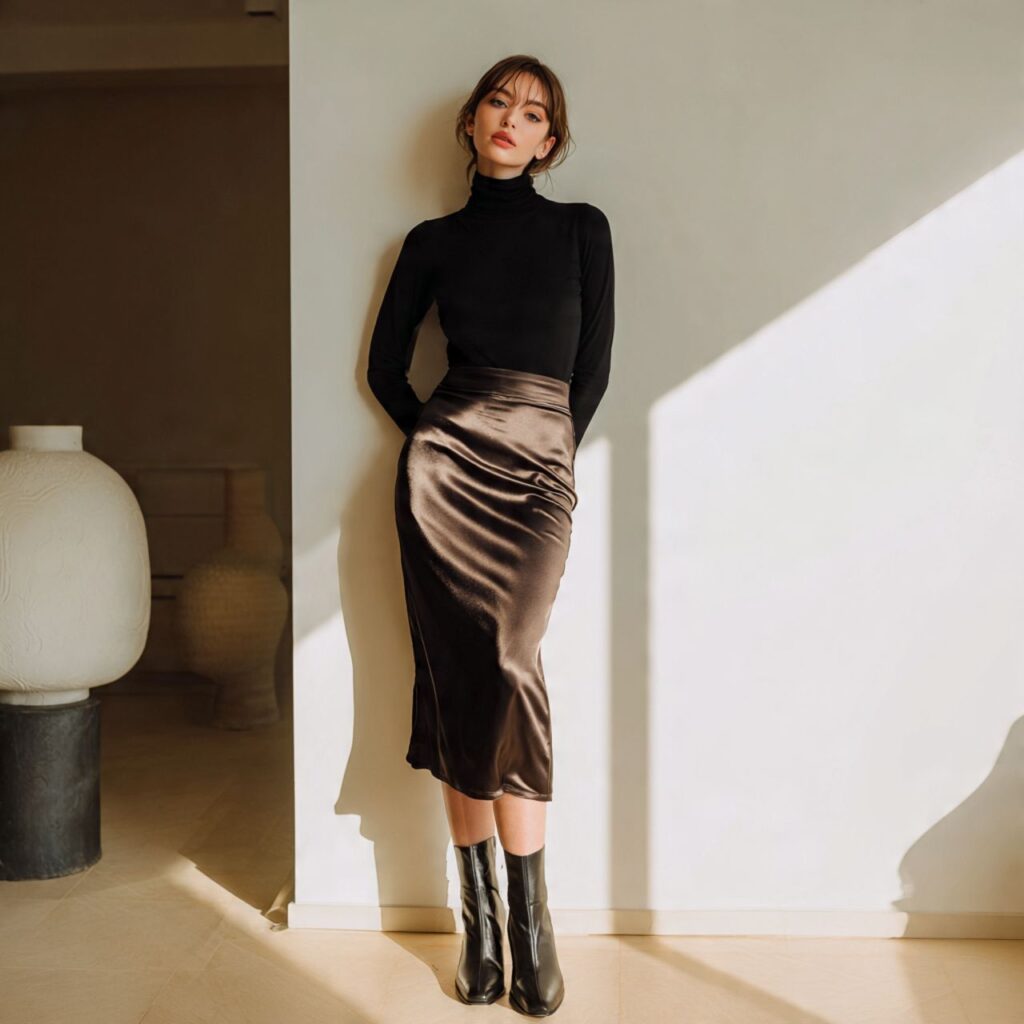 9. Turtleneck + Midi Slip Skirt