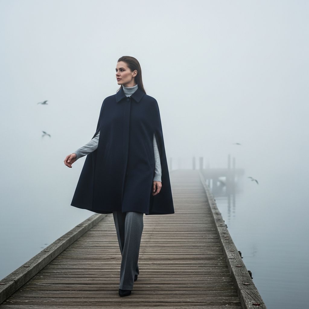 Why It Works: Capes solve the problem of bulky sleeves while maintaining style. They layer beautifully over suits or dresses and create a timeless, almost cinematic elegance.