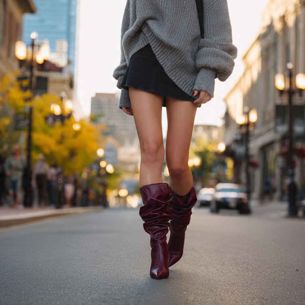 Mid-calf boots in interesting shapes, colors, or materials become the focal point of outfits. Think slouchy styles, western-inspired designs, or bold colors worn with shorter hemlines to show them off.