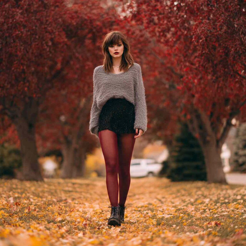 Tights in bold colorsโburgundy, forest green, mustard yellowโpaired with neutral outfits add unexpected pops of color and personality. They’re a low-commitment way to experiment with color.