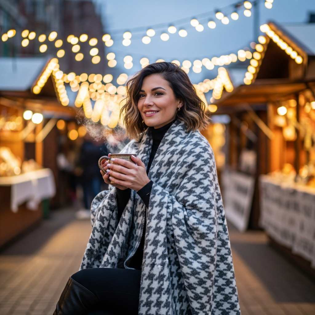 Blanket scarves have evolved into actual outerwear alternatives. Enormous wool or cashmere wraps in plaid, houndstooth, or solid colors are being worn as the primary outer layer over streamlined clothing, creating cocooning warmth with bohemian elegance.