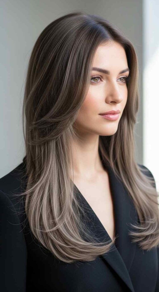 Balayage hand-painting—this freehand technique allows colorists to paint lighter ash tones where sun would naturally lighten hair, creating organic-looking dimension that grows out beautifully.