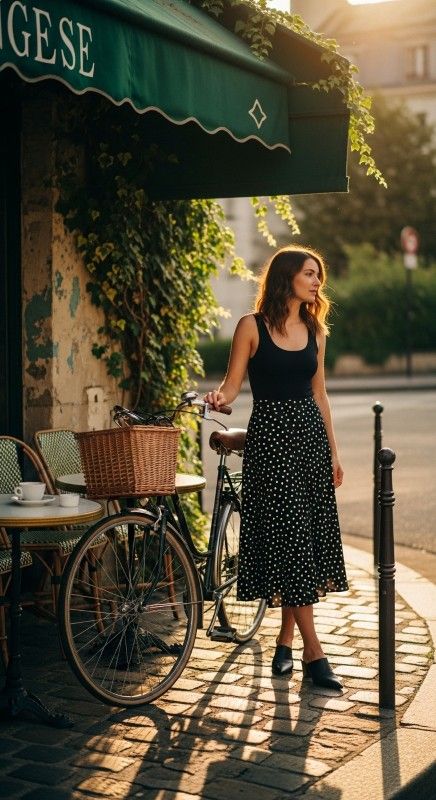 Why It Works: The volume of a tiered skirt contrasts beautifully with a slim tank, creating balance without bulk. Chiffon floats in summer air, making it ideal for outdoor dates. Tuck the tank neatly and add strappy flat sandals for comfort.