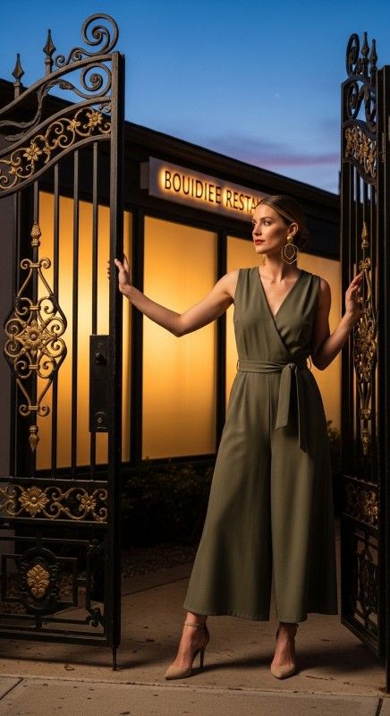 Why It Works: Jumpsuits are effortless date night heroes, especially in breathable culotte cuts. The wide legs allow airflow, while a cinched waist keeps the silhouette flattering. Bold earrings draw attention upward and add personality without overwhelming the look.