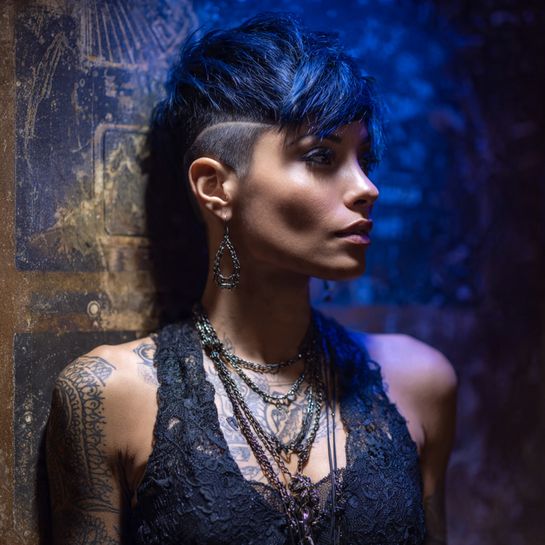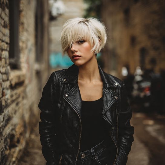 Longer pixie approaching bob length on one side. Heavily layered throughout for movement and texture that bridges two classic styles.