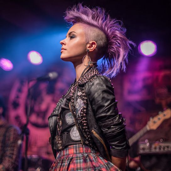 Asymmetrical mohawk variation. Central strip longer with asymmetrically shaved sides creating punk edge with feminine softness.
