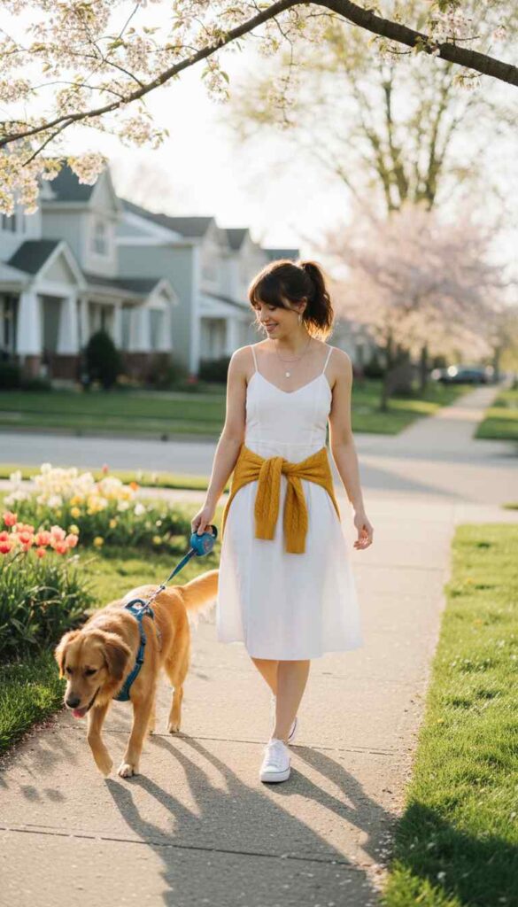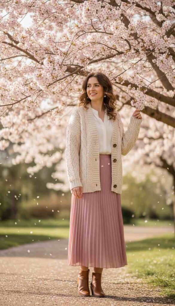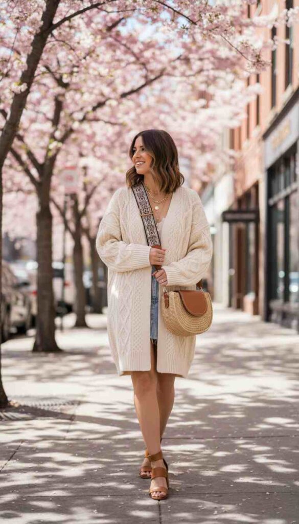 What makes spring particularly perfect for cardigans is the season’s characteristic temperature volatility. Mornings start cool and afternoons warm generously, then evenings return to that fresh crispness that makes you reach for something soft. The cardigan is spring’s perfect companion—worn closed over a light dress during morning walks, tied casually around shoulders at afternoon picnics, draped over arms during warm lunch hours, and buttoned back up for breezy evening strolls. No other garment offers this fluid adaptability with such effortless style.