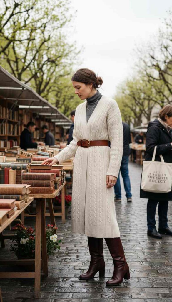 Signature style emerges from repetition and refinement rather than constant variety. Wearing a specific cardigan type repeatedly creates personal style recognition—people begin associating that aesthetic with you specifically. This isn’t monotony; it’s identity.