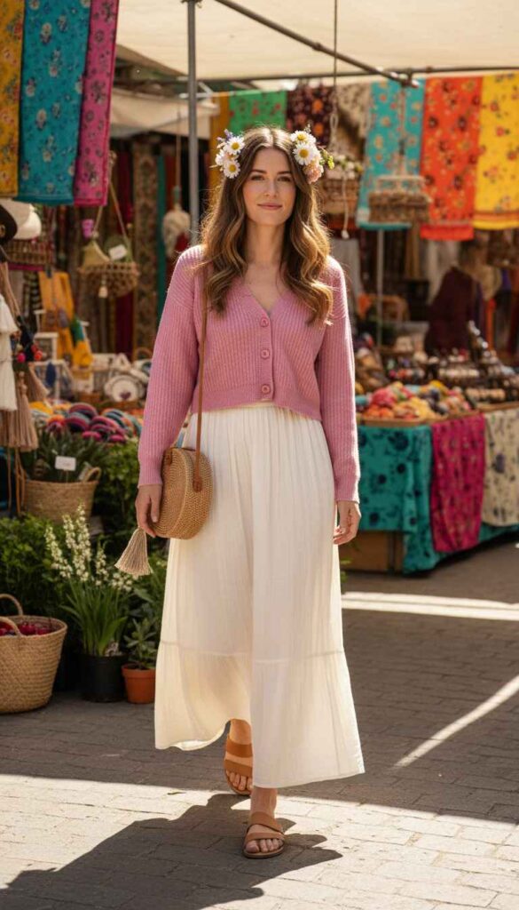 8. Cropped Cardigan and Maxi Skirt