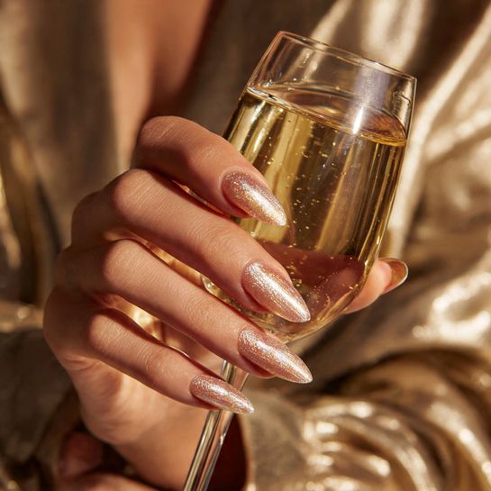 Subtle metallic elegance. Pale gold with shimmer creates sophisticated luxe spring statement.