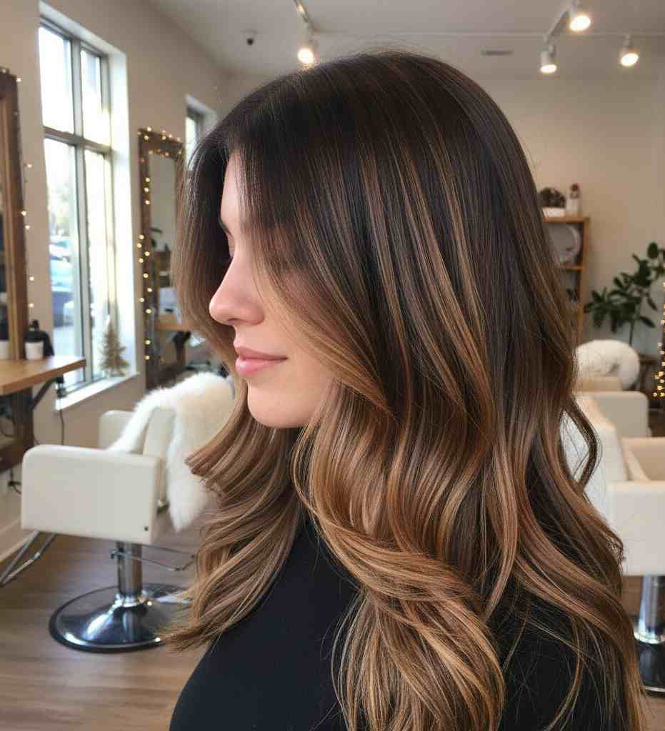 Winter 2025–2026 is all about warmth, richness, and soft dimension for brunettes. If you love balayage that looks natural yet polished, this season brings some of the most beautiful color blends — perfect for cozy winter outfits and glowing skin tones.