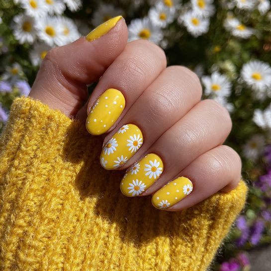 Radiate pure joy with cheerful daisies painted on a bright yellow base. This happy design is impossible to look at without smiling.