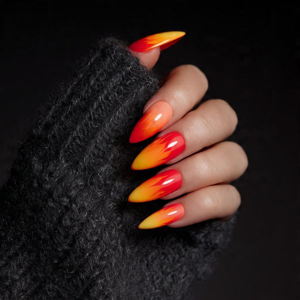 Turn up the heat with flame-inspired gradients in sunset hues. This edgy design brings dramatic flair to classic spring colors.