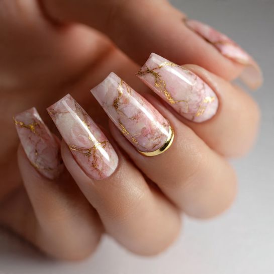 Celebrate Pantone’s influence with swirling marble patterns in soft peach tones mixed with cream and gold veins. This sophisticated design adds texture and dimension to your manicure.