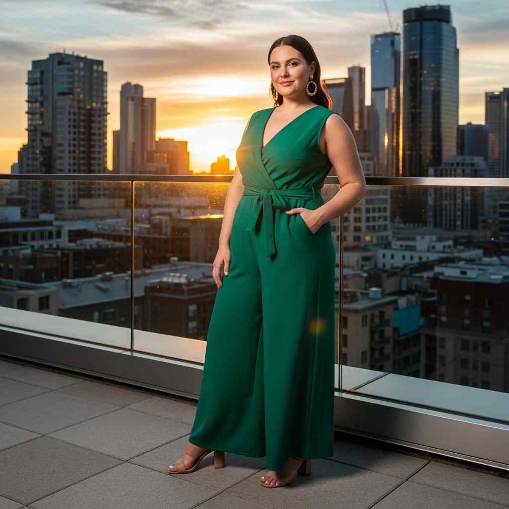 Why it works: Jumpsuits eliminate the need to coordinate separates and the wide-leg style balances proportions beautifully. The defined waist creates an hourglass silhouette.