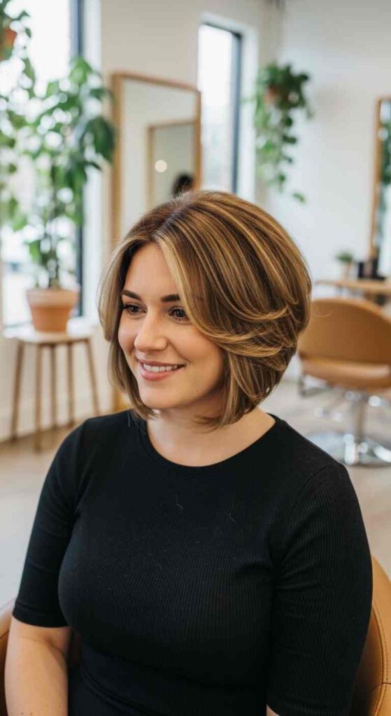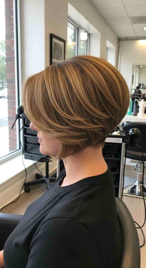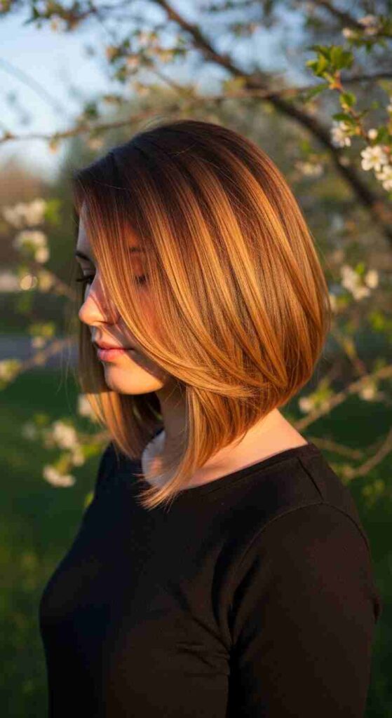 Balayage adds depth and dimension to the angled shape, making it look fuller and more dynamic.