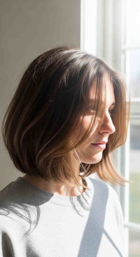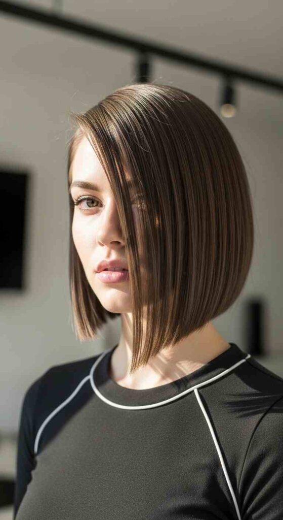 An angled bob (also known as an A-line bob) is shorter at the back and gradually longer toward the front. The shape adds movement, structure, and instant polish — without needing hours of styling.