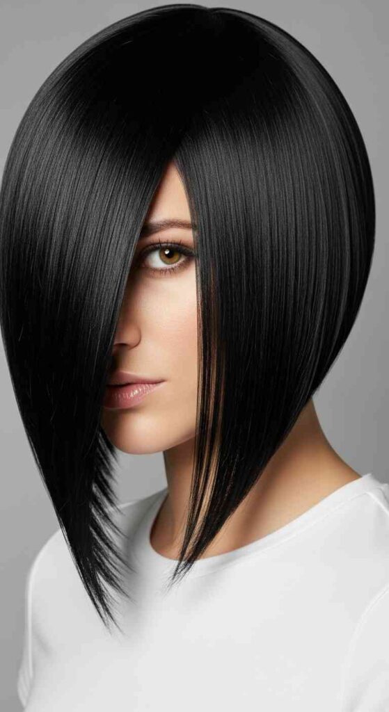 12. Jet Black Glossy Angled Bob