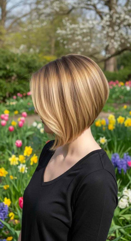 A subtle angle with soft layers and creamy blonde tones gives a light, spring-ready finish. Perfect if you want something fresh but not dramatic.