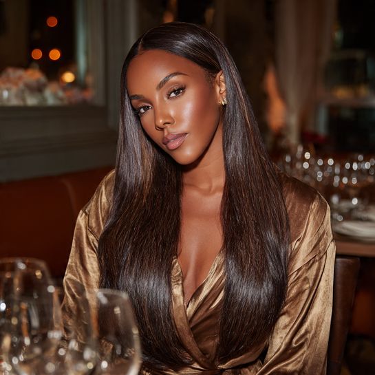 Sleek straight sophistication. Professionally straightened natural hair with dimensional color creates glamorous elegance.