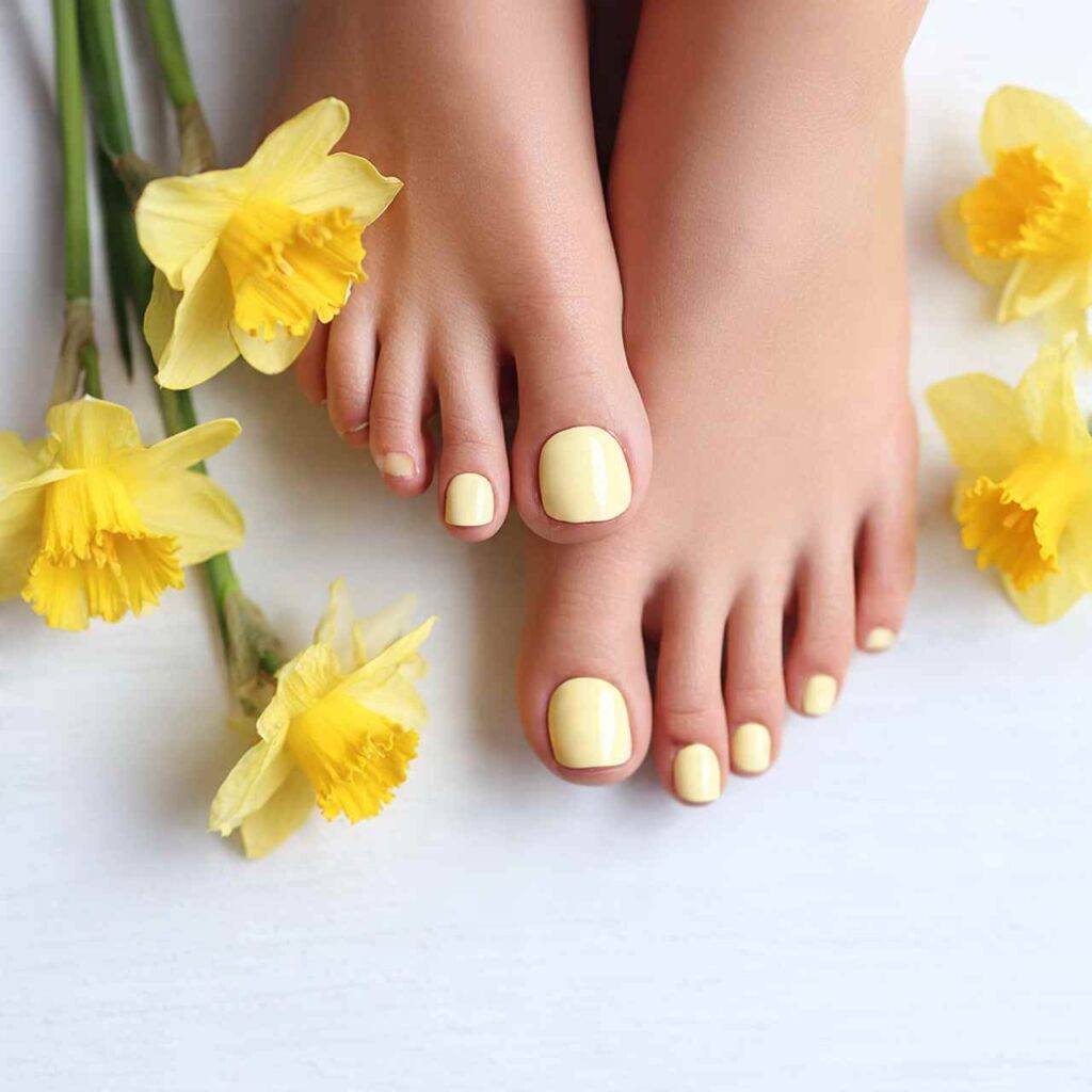Apply pale yellow polish to all toesโchoose a soft, buttery shade rather than neon. This optimistic color brings warmth and cheer during winter while being ideal as spring approaches. Yellow is underutilized in nail art but flatters many skin tones and feels unique. The solid pastel application keeps it simple and wearable. This choice suits those ready to embrace spring energy even in the depths of winter.