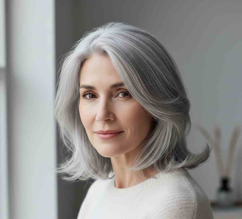 Embracing natural grey or dyeing hair a gorgeous silver shade—not trying to look younger but celebrating the beauty of silver hair at any age.
