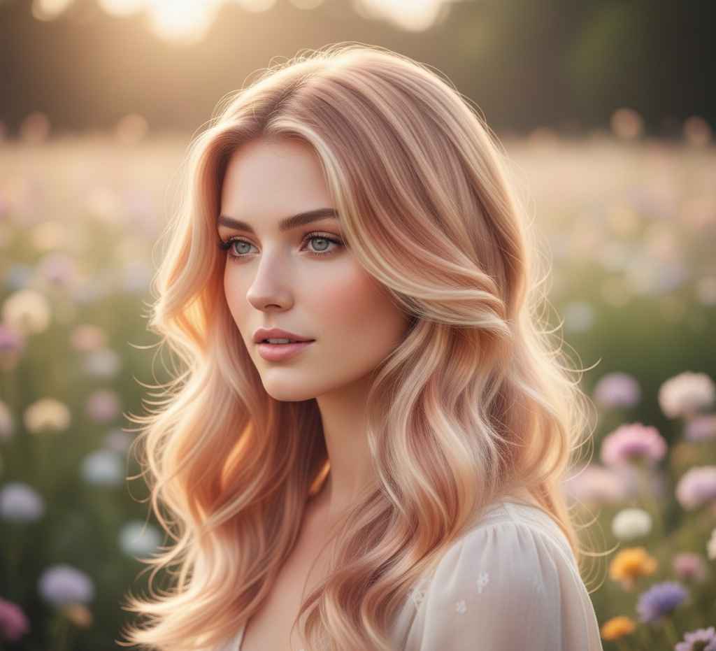 The perfect peachy-pink blonde—not orange, not red, but that magical in-between that’s warm, romantic, and incredibly unique.