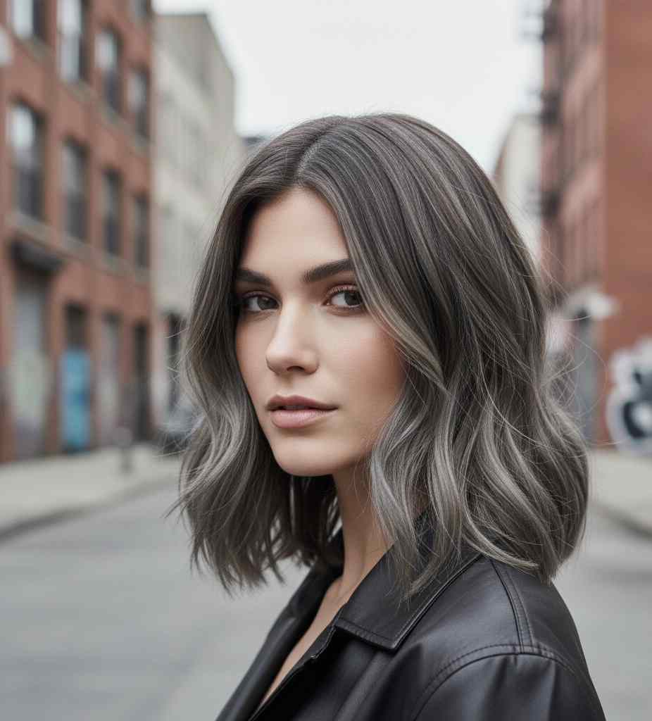 Why it’s trending: This trendy color is all over social media. It’s the perfect choice for those wanting to try grey hair without going fully silver.
