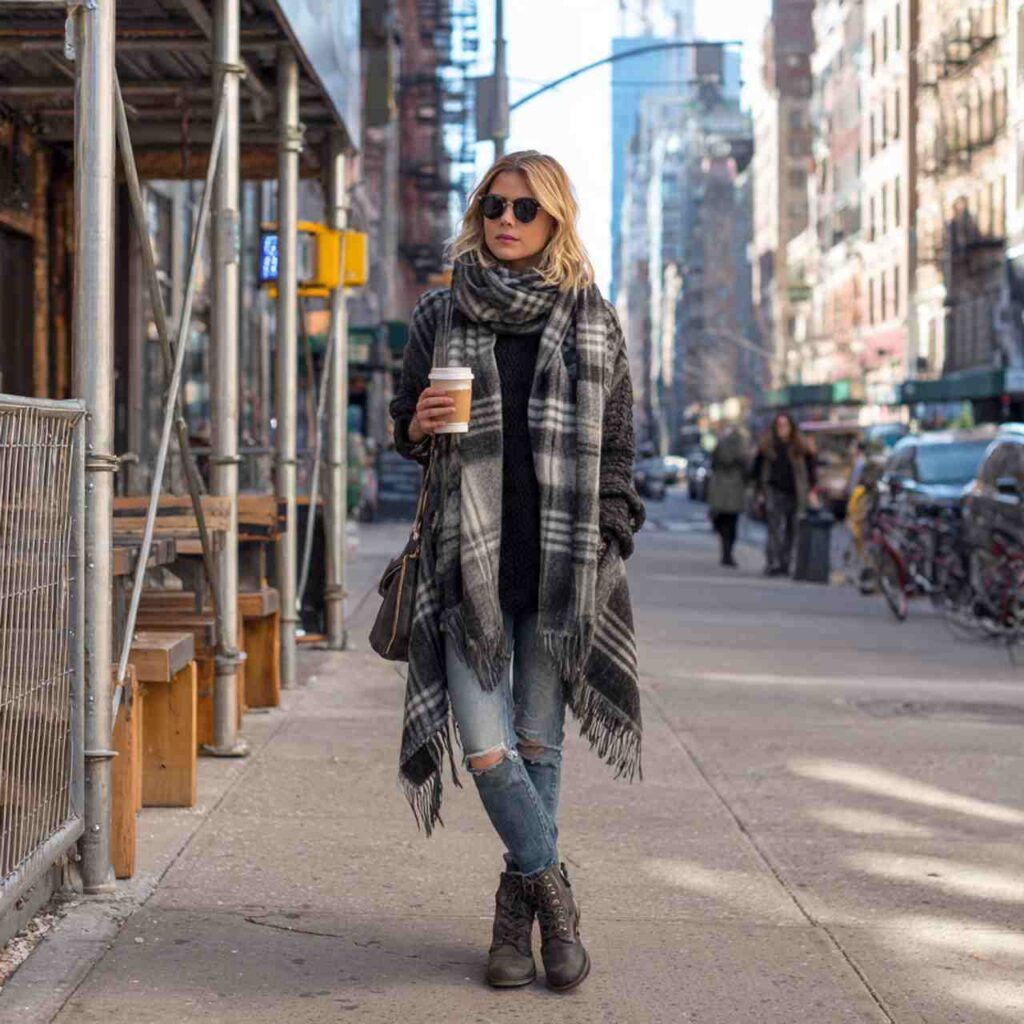 Why It Works for NYC: For quick trips between subway and destination, a blanket scarf provides warmth without coat bulk. Easy to remove indoors and doubles as a cozy accessory.